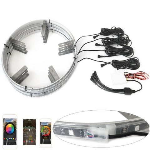 NSSC Kit d'anneau lumineux LED de roue de voiture coloré RVB illuminé 14 "15.5" 17"